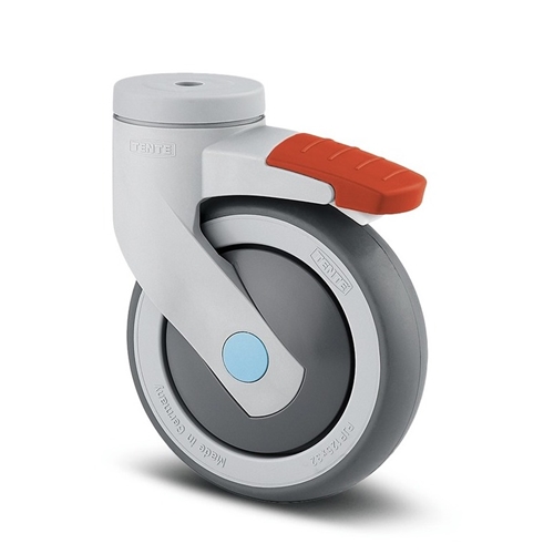 Levina 125mm Stainless Steel Swivel Bolt Hole Total Lock Grey Synthetic Thermoplastic Rubber Castor – 100kg Capacity